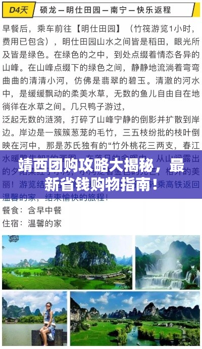 靖西市作为广西壮族自治区的重要城市,近年来经济发展迅速,购物市场日益繁荣,越来越多的消费者选择在团购的方式下购物,以获取更优惠的价格和更好的服务,本文将为您提供最新的靖西团购攻略,让您轻松掌握省钱购物技巧。